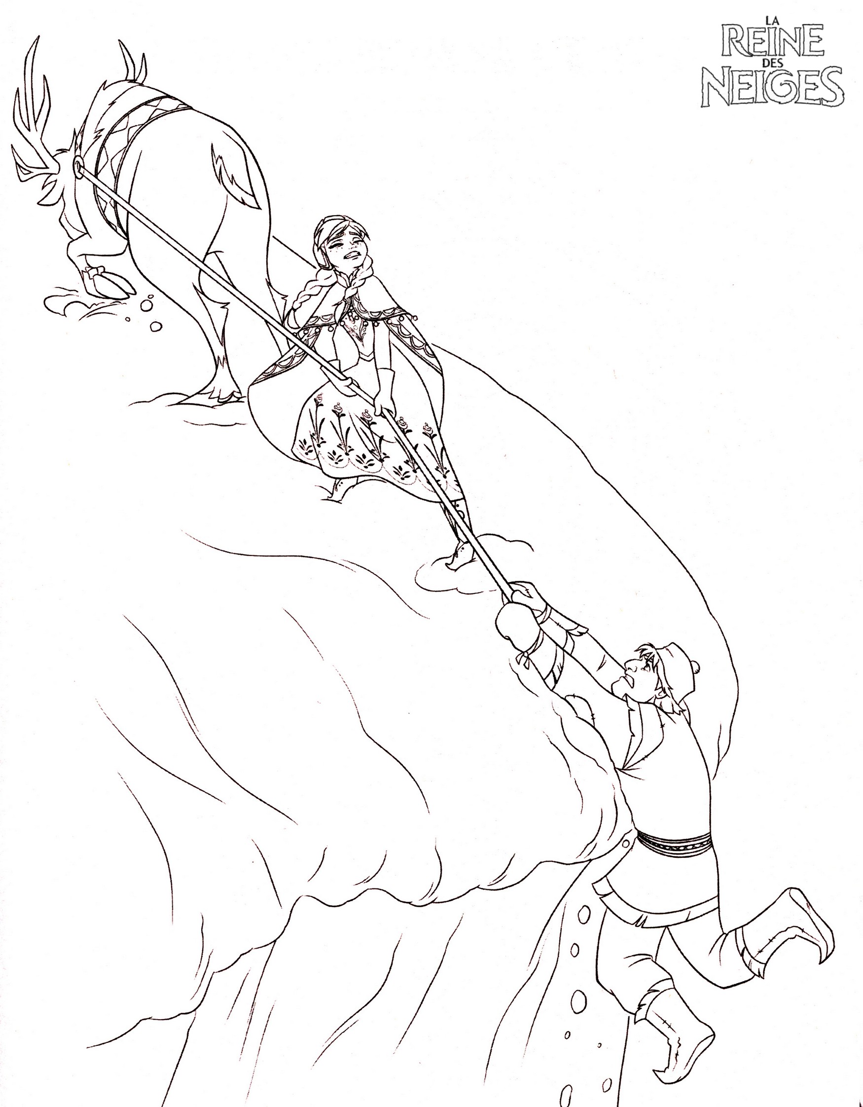 coloriage Anna et swen portent secours a kristoff