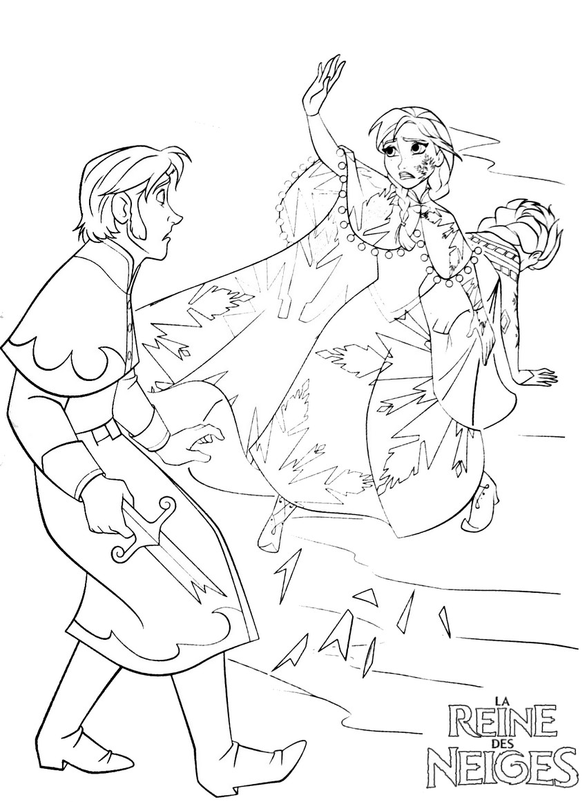 Anna touchée par le sortilège se fixe en statue de glace et brise l\'épée de Hans