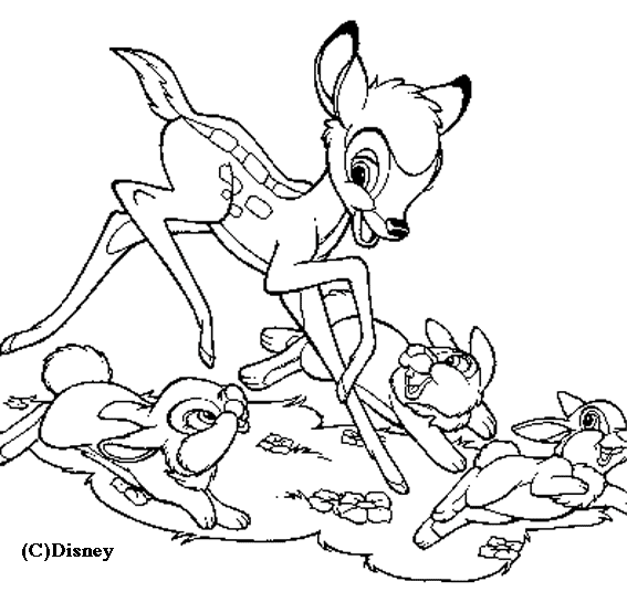 coloriage à imprimer gratuit : Bambi court avec les lapins