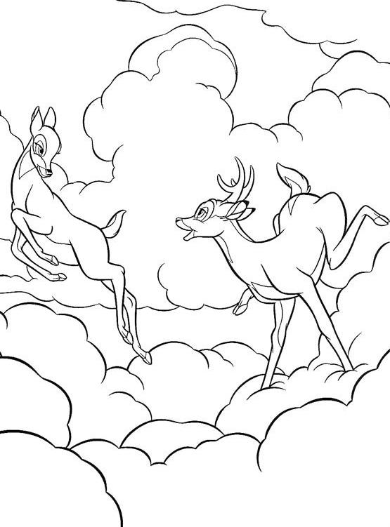 coloriage à imprimer gratuit : Bambi gambade avec sa fiancee