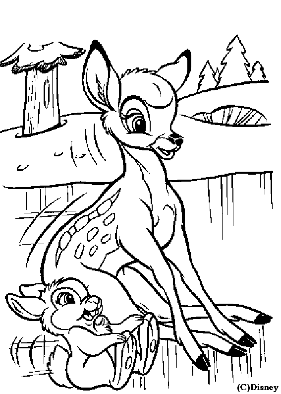 coloriage à imprimer gratuit : Bambi glisse avec pam pam