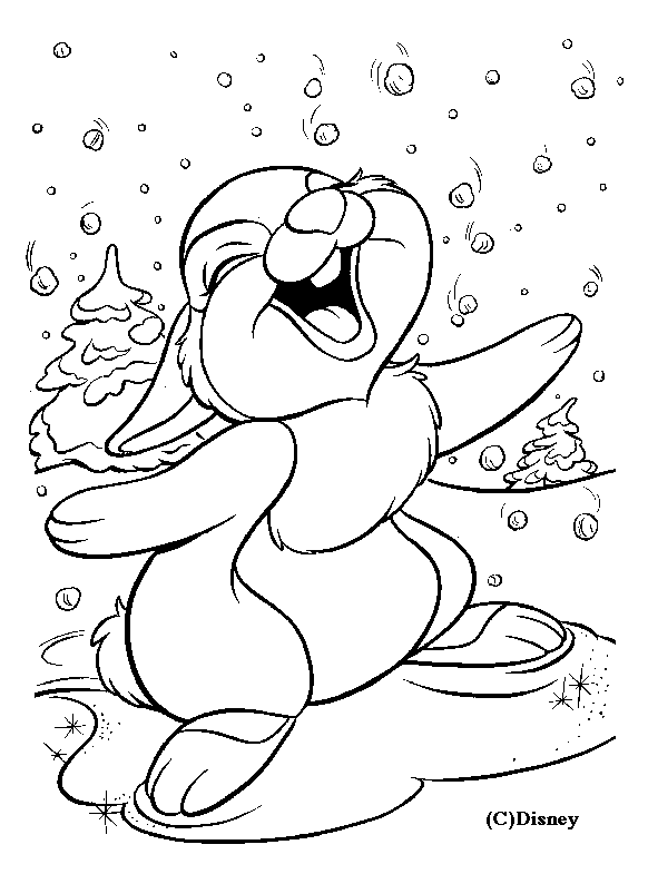 coloriage à imprimer gratuit : Bambi pam pam sous la neige