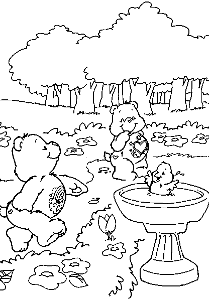 coloriage à imprimer gratuit : Bisounours dans le jardin public