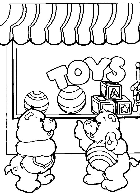 coloriage à imprimer gratuit : Bisounours devant le magasin de jouet