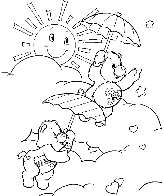 coloriage à imprimer gratuit : Bisounours et les parapluies