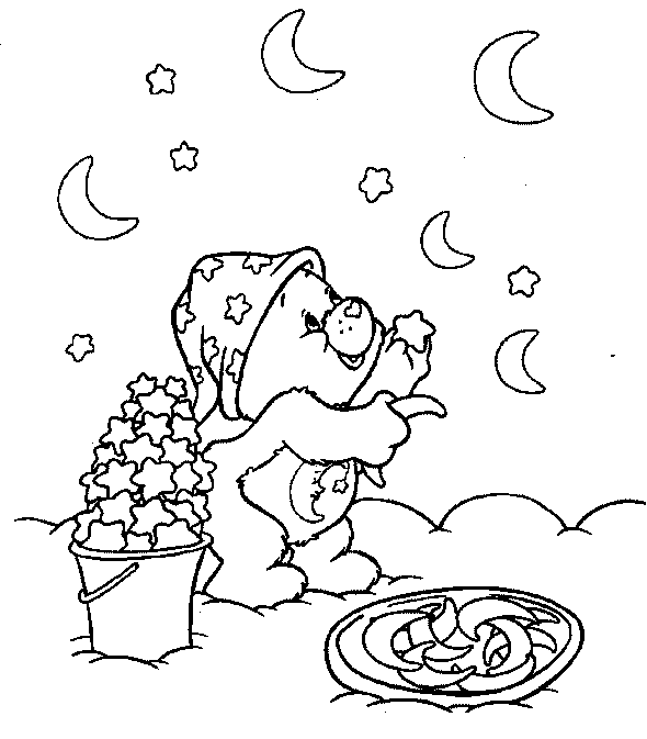 coloriage à imprimer gratuit : Bisounours fabrique des lunes