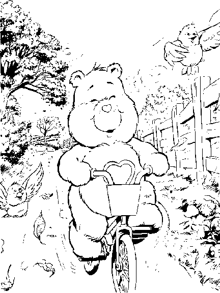 coloriage à imprimer gratuit : Bisounours fait du velo