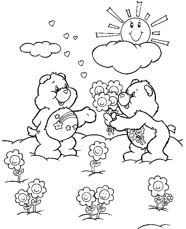 coloriage à imprimer gratuit : Bisounours ramassent des fleurs