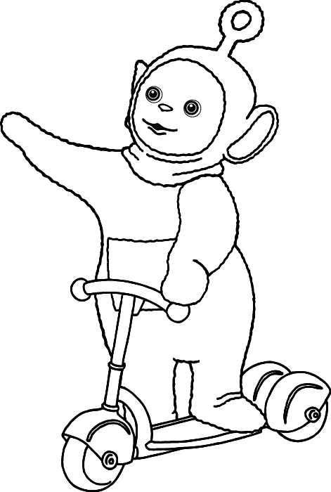 coloriage à imprimer gratuit : Telettubies sur sa trottinette