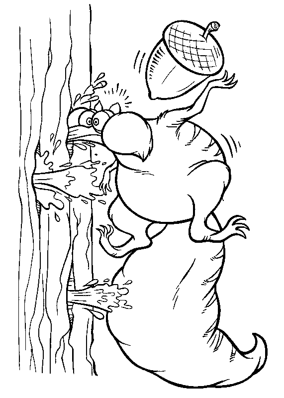 coloriage à imprimer gratuit : age de glace scrath se plante avec sa noisette