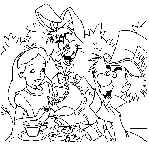 coloriage à imprimer gratuit : alices au pays des merveilles boit le the