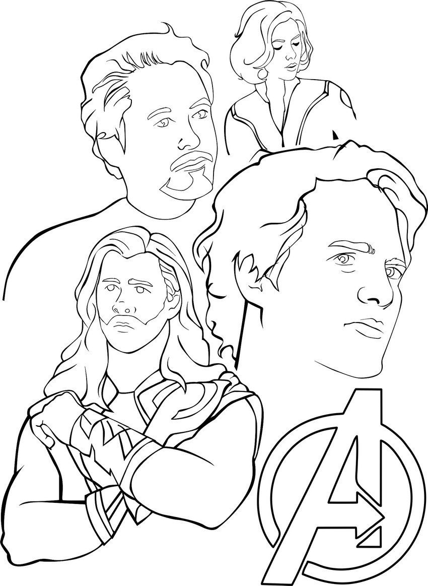 Portrait des avengers , avec en premier plan Thor et le blason des avengers
