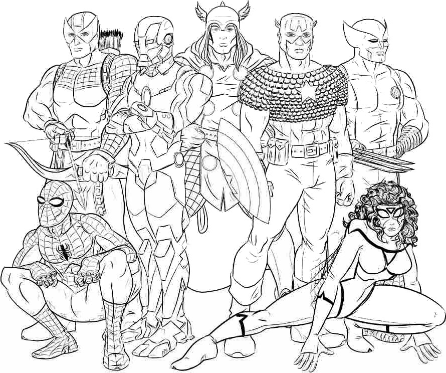 coloriage à imprimer gratuit : avengers prennent la pose