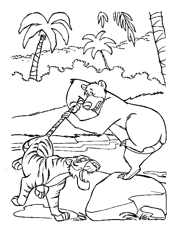 coloriage à imprimer gratuit : baloo se bat contre le tigre