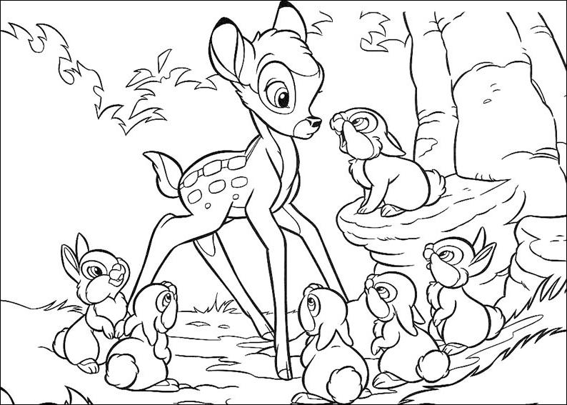 coloriage à imprimer gratuit : bambi parle avec les lapins