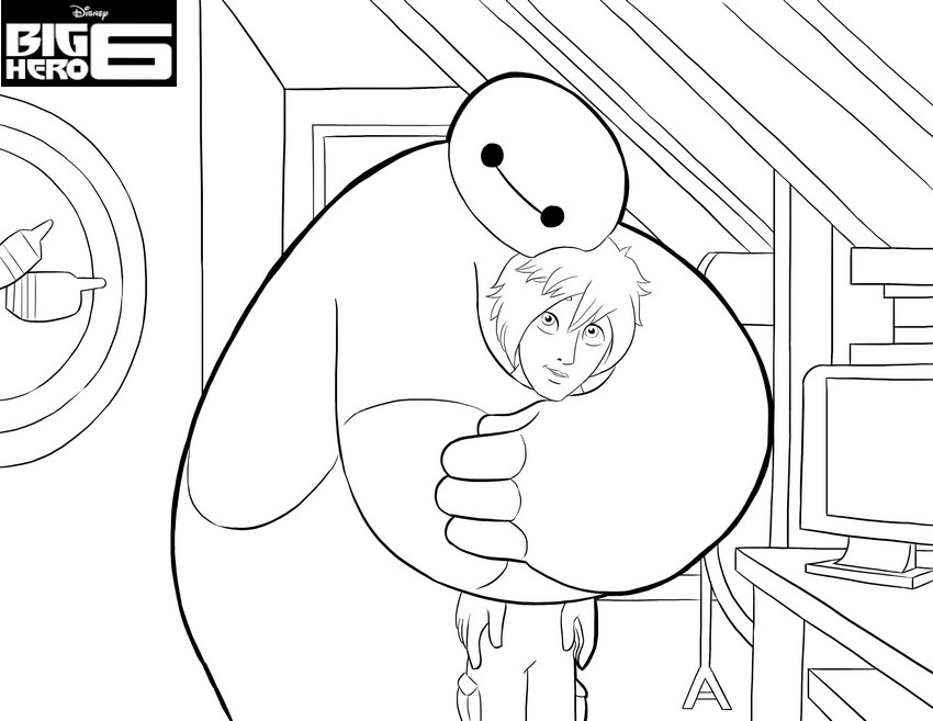 coloriage big hero 6  baymax fait un calin a hiro