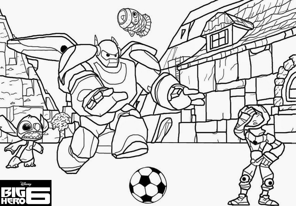 coloriage à imprimer gratuit : big hero 6 partie de foot baymax