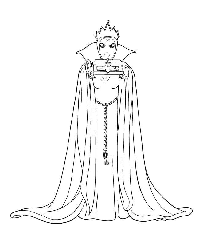 coloriage à imprimer gratuit : blanche neige reine avec boite