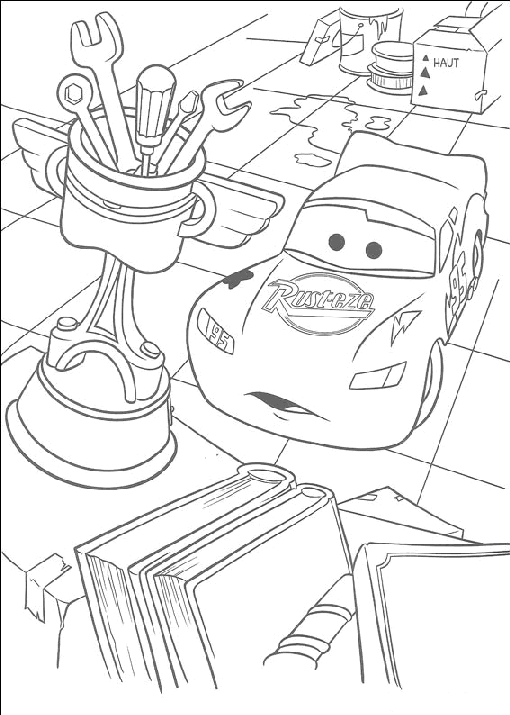 coloriage à imprimer gratuit : cars flash mac queen regarde la piston cup