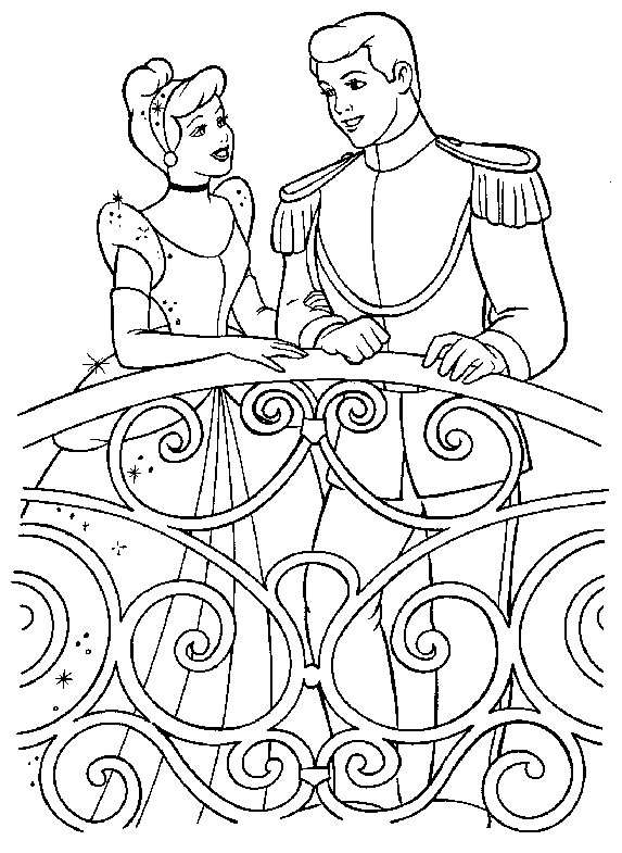 coloriage à imprimer gratuit : cendrillon sur le balcon avec le prince