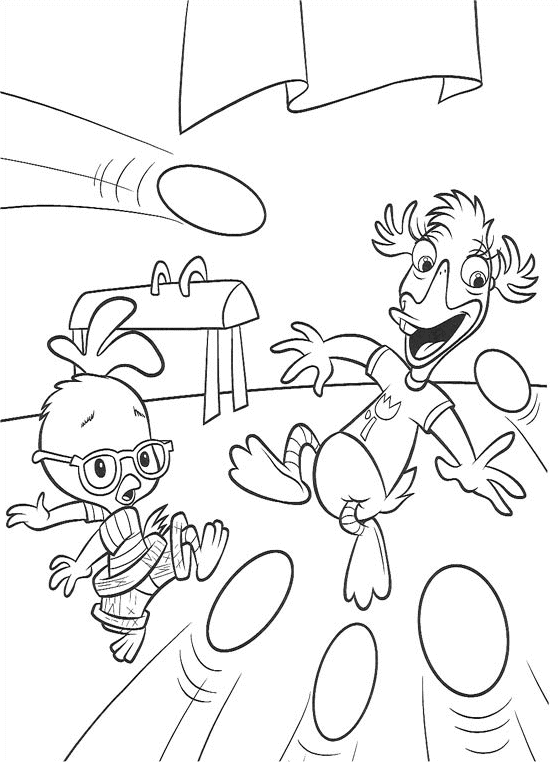 coloriage à imprimer gratuit : chicken little et abby jouent a la balle