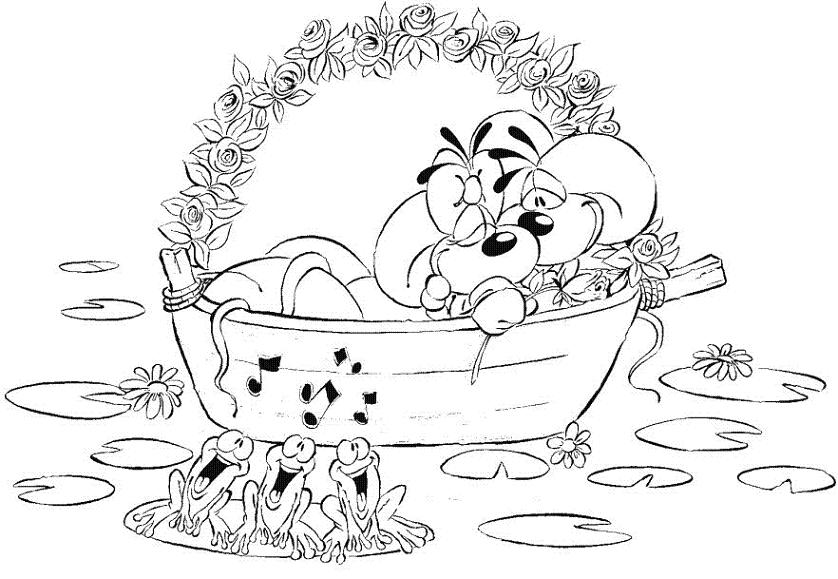 coloriage diddl et diddlina en bateau