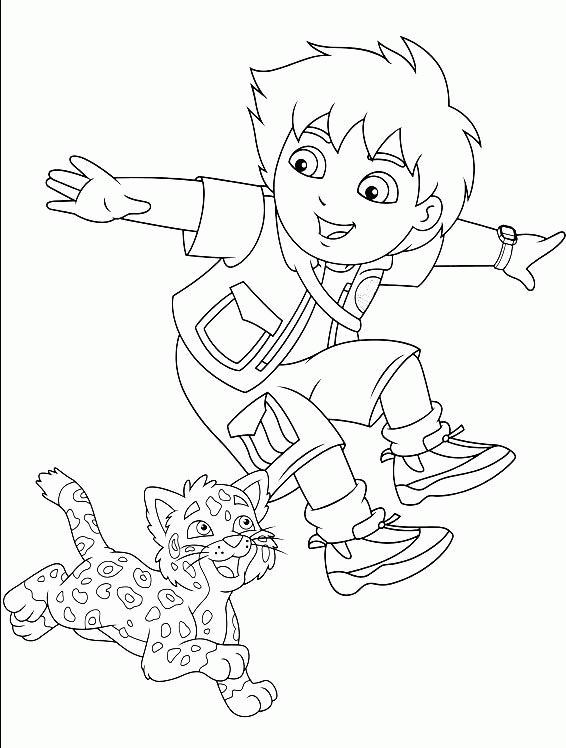 coloriage à imprimer gratuit : diego court avec bebe jaguar