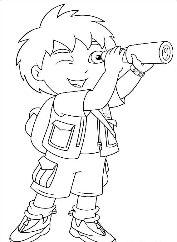 coloriage à imprimer gratuit : diego joue a l explorateur