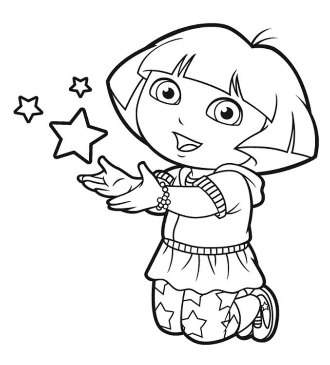coloriage à imprimer gratuit : dora avec les etoiles