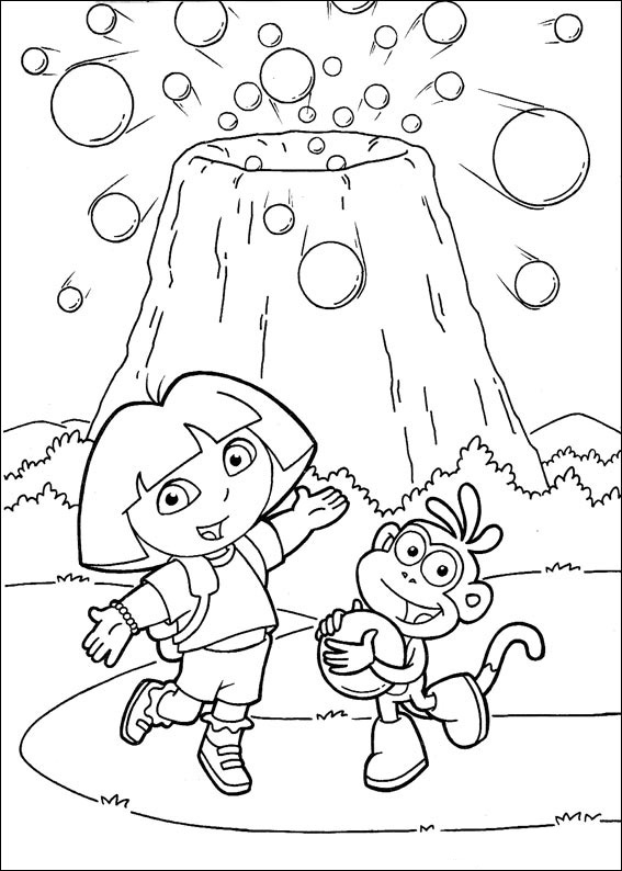 coloriage à imprimer gratuit : dora devant un volcan de bonbon