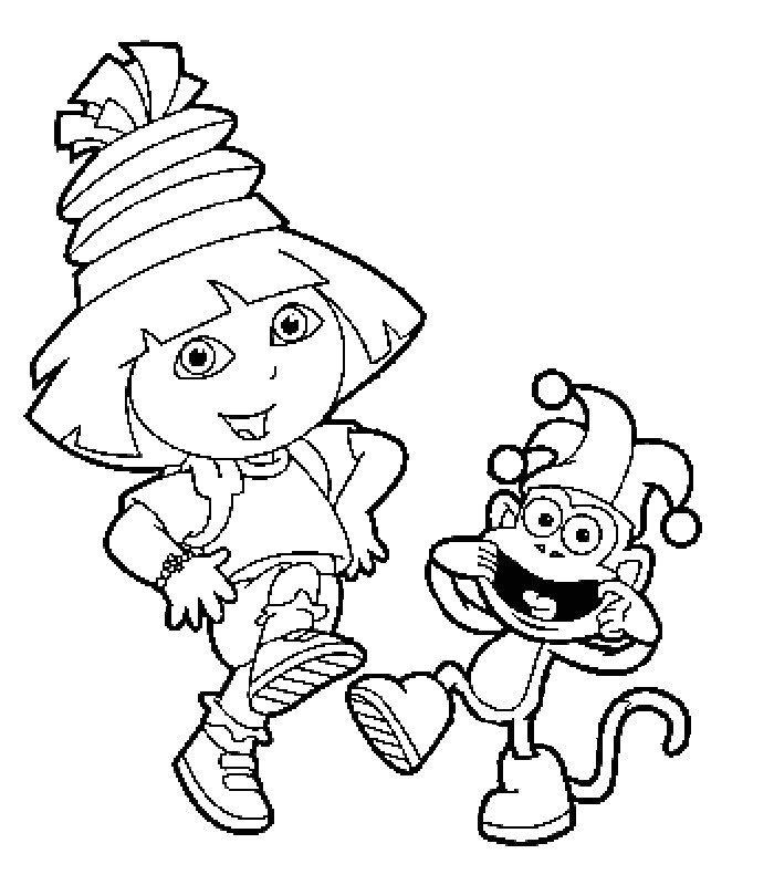 coloriage à imprimer gratuit : dora et babouche au carnaval