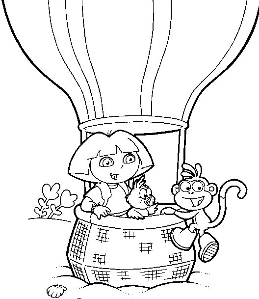 coloriage à imprimer gratuit : dora et babouche en montgolfiere