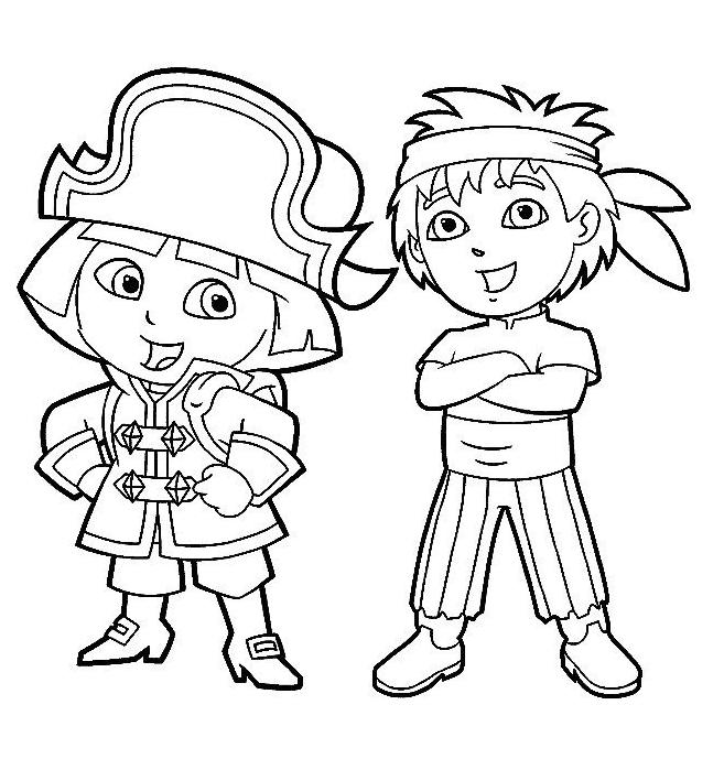 coloriage à imprimer gratuit : dora et diego jouent les pirates