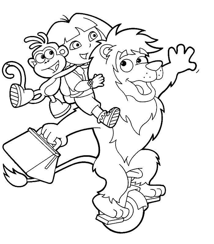 coloriage à imprimer gratuit : dora et ses amis font les acrobates
