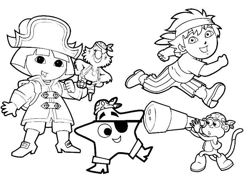 coloriage à imprimer gratuit : dora et ses compagnons les pirates