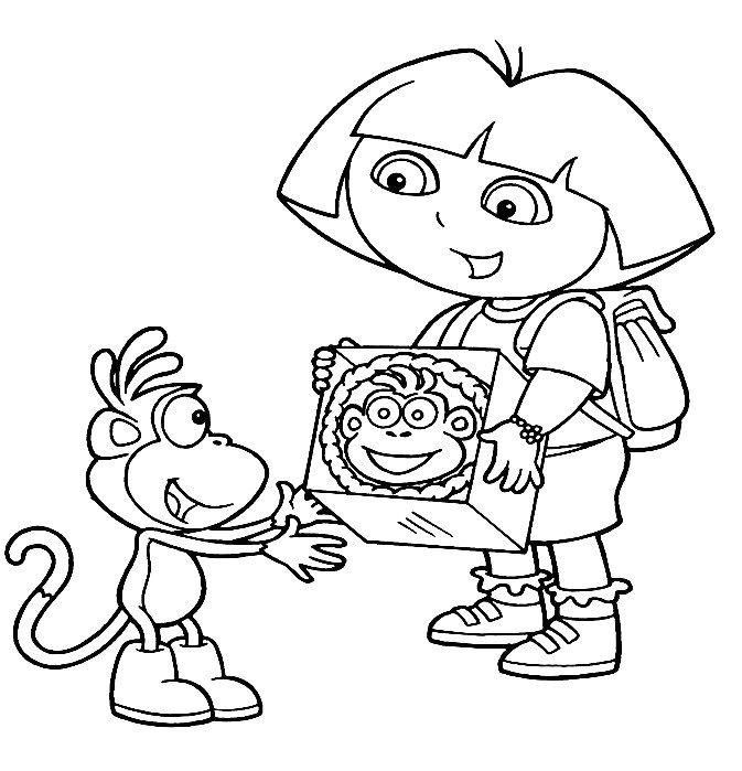coloriage à imprimer gratuit : dora offre un cadeau a babouche