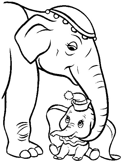 coloriage à imprimer gratuit : dumbo sous la trompe de sa maman