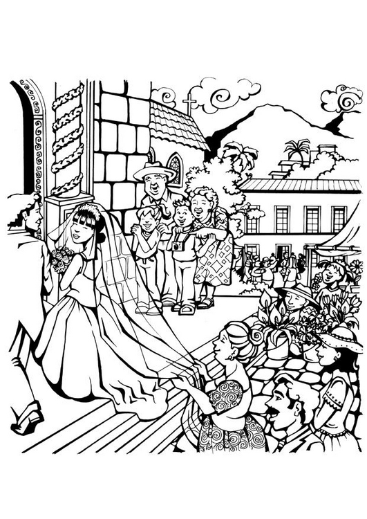 coloriage à imprimer gratuit : entree des maries dans l eglise