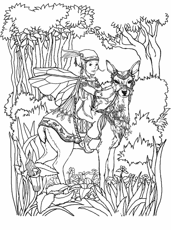 coloriage à imprimer gratuit : fee chevauchant une biche