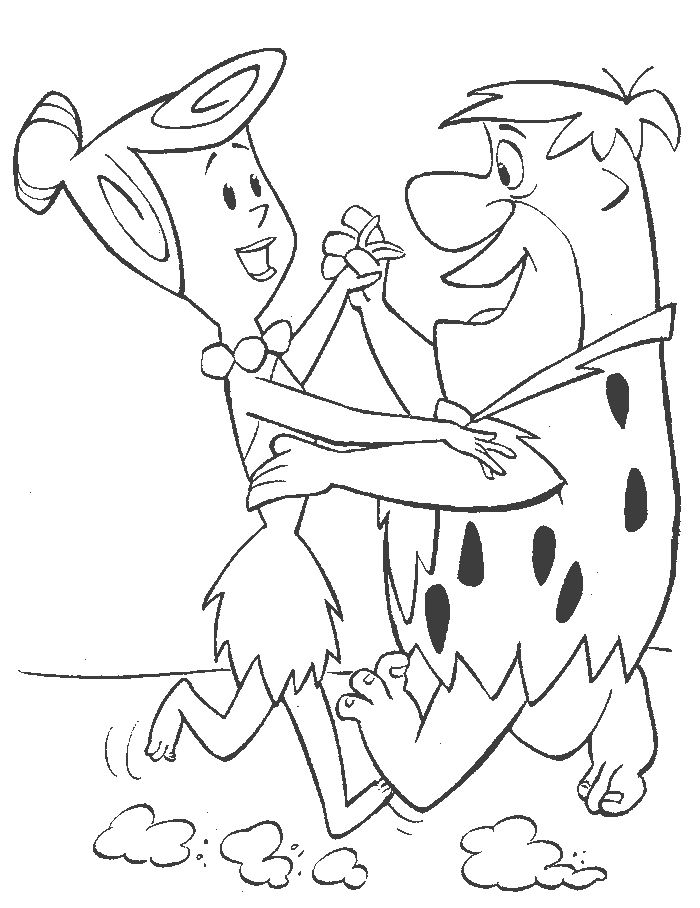 coloriage à imprimer gratuit : flintstones wilma et fred pierreafeu dansent