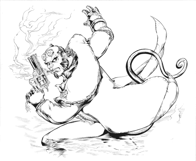 coloriage à imprimer gratuit : hellboy avec son pistolet