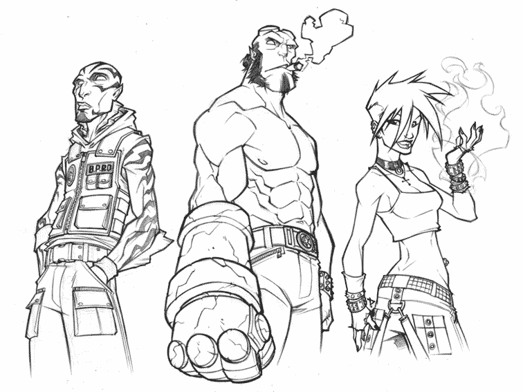 coloriage à imprimer gratuit : hellboy et ses amis