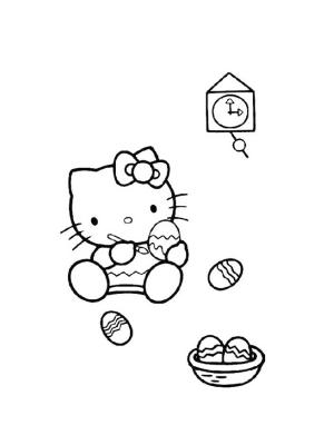 coloriage à imprimer gratuit : hello kitty decore les oeufs de paques