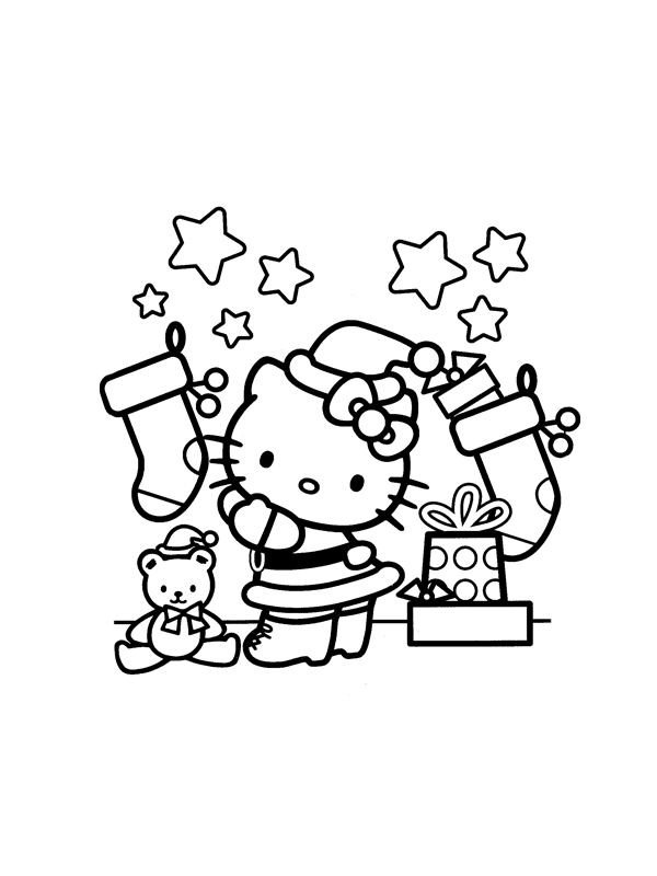 coloriage à imprimer gratuit : hello kitty decore pour noel