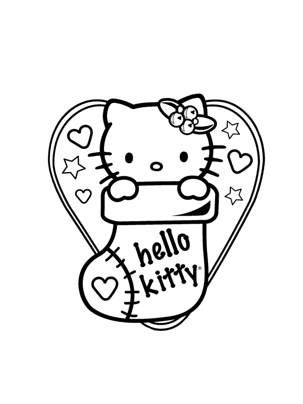 coloriage à imprimer gratuit : hello kitty et la chaussette de noel