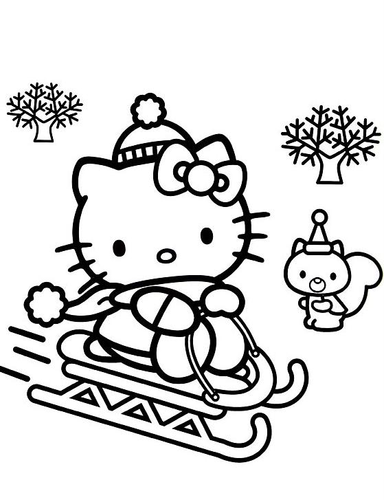 coloriage à imprimer gratuit : hello kitty fait de la luge
