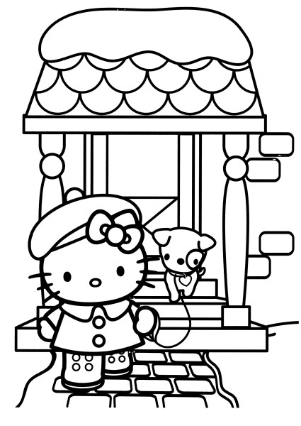coloriage à imprimer gratuit : hello kitty sort promener son petit chien