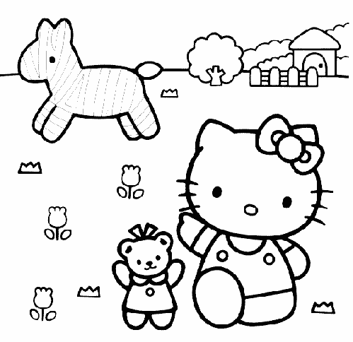coloriage à imprimer gratuit : hellokitty a la campagne