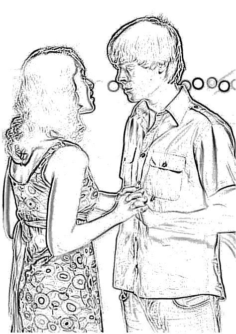 coloriage à imprimer gratuit : high school musical troy et gabriella se tiennent les mains