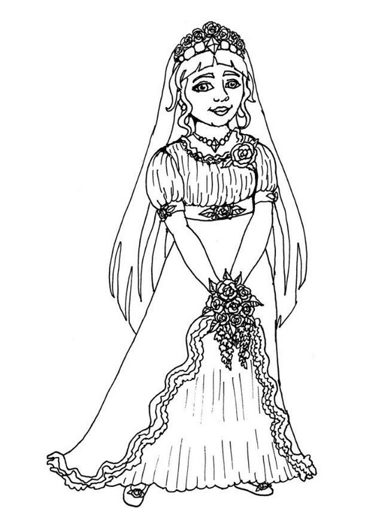coloriage à imprimer gratuit : jolie mariee dans sa robe de mariage